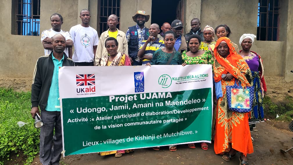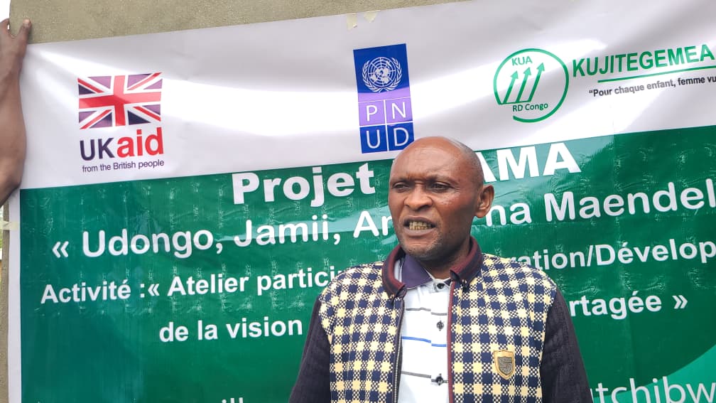 Cette activité s’inscrit dans le cadre du projet UJAMA UDONGO JAMII AMANI NA MAENDELEO, mis en œuvre par KUJITEGEMEA ACTION KUA-RDC, avec l’appui financier du Programme des Nations Unies pour le Développement (PNUD) et de UKAID.