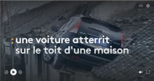 Le véhicule de la mort. une voiture mystérieuse tombée du ciel. les gens se demandent comment ce véhicule a atterrit sur ce toit donc Mystère...